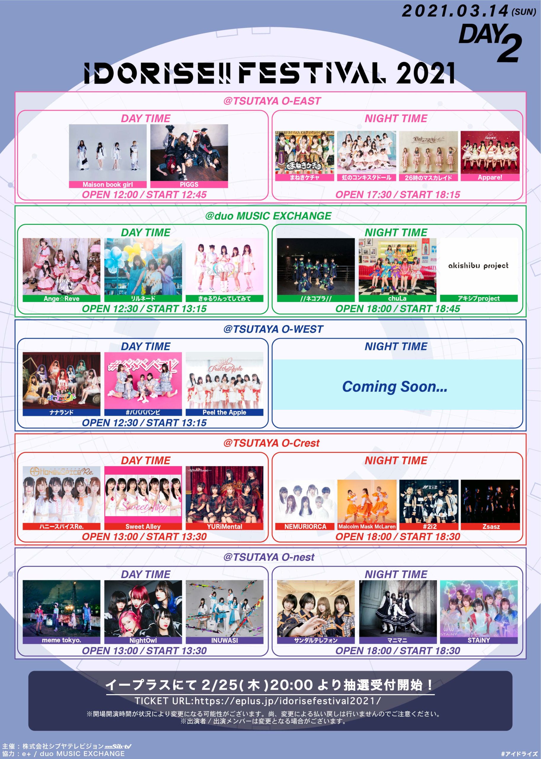 例年のサーキットイベントではなく、O-EAST / O-WEST / O-nest / O-Crest / duo MUSIC EXCHANGEの5会場別で昼夜2公演ずつを行います。
