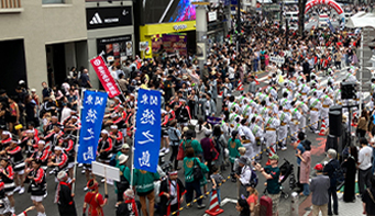 毎年5月中旬の日曜日に道玄坂~文化村通りの交通規制を行い、 2,000人以上の踊り手が練り歩くイベントです。 渋谷・鹿児島ゆかりの「おはら節」、「渋谷音頭」、「ハンヤ節」、「渋谷発! ハンヤ節」で渋谷のメインストリートが“かごしま”に染まりました。